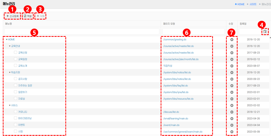• ‘신규등록’ 버튼을 클릭하여 새로운 메뉴 항목을 추가합니다.