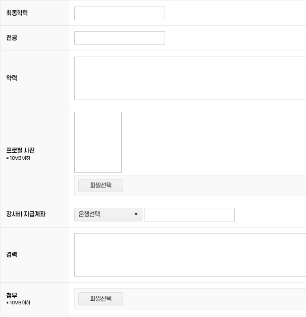 입력한 교수자 정보를 저장합니다.