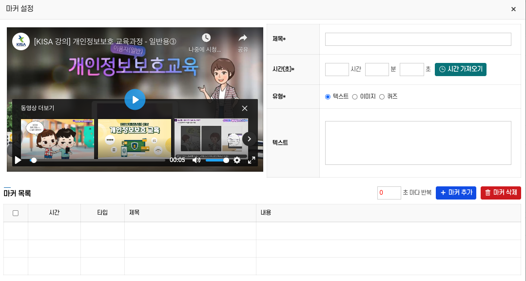 • 마커가 표시될 영상의 시점을 초 단위로 입력합니다.
