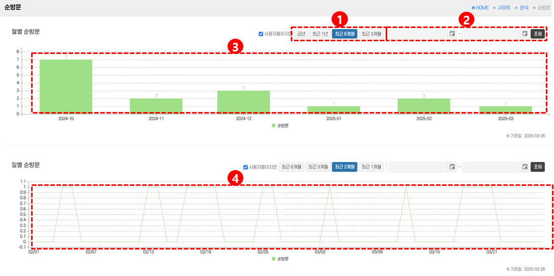 - 기간 설정 후 클릭하여 해당 통계 데이터를 새로 고침합니다.