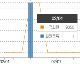 - 일별 회원등록을 일 단위로 선형 그래프로 표시합니다.