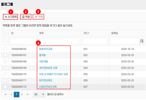 등록된 출제그룹들이 리스트로 표시됩니다.