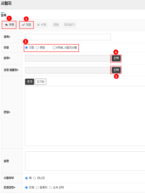 어떤 과정(교육 과정)에 해당 시험지가 연결될지 지정하는 항목입니다.
