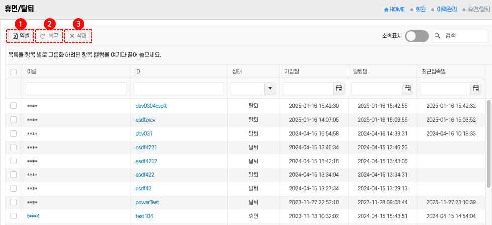 - 주기적으로 엑셀 다운로드를 통해 인원 현황 백업 권장