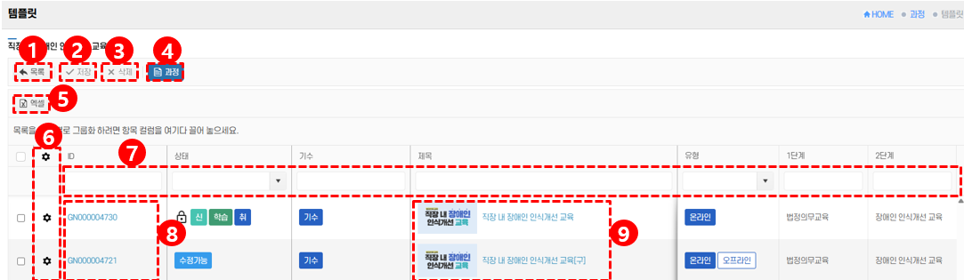 템플릿이 적용된 과정 목록으로 이동합니다.