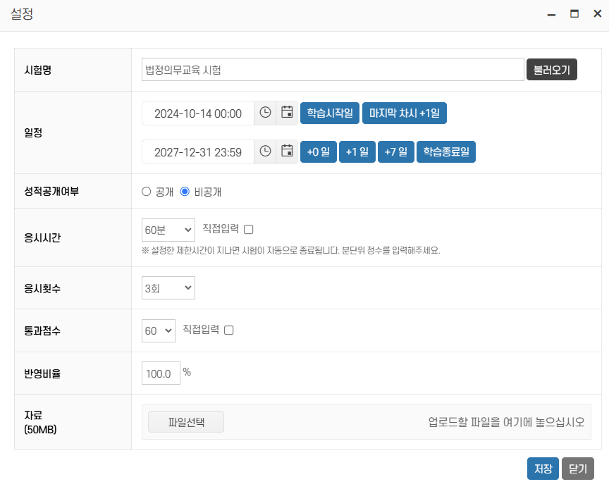 시험의 상세 설정을 수정할 수 있습니다.