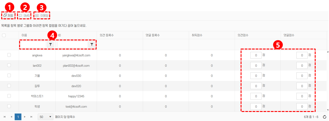 1. 각 학습자의 의견 점수와 댓글 점수를 확인합니다.