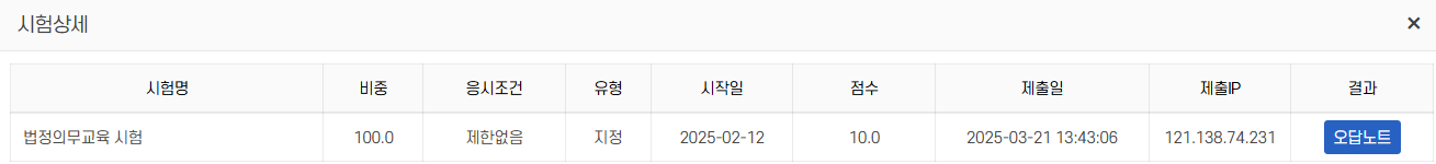 - 시험 응시 여부 및 점수 상태를 확인합니다.