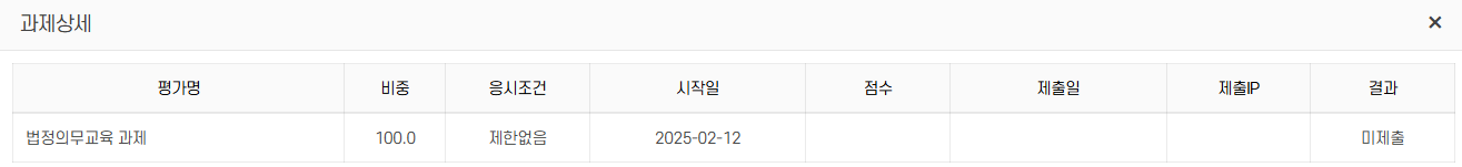 수료처리는 진도율 및 시험/과제/설문 조건을 충족한 경우에만 가능합니다. - 조건 미충족 시